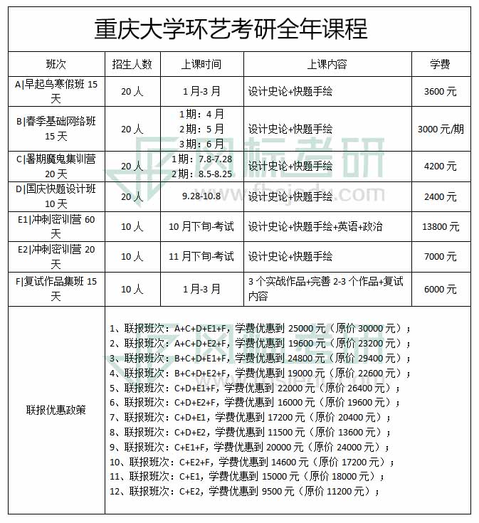 重庆大学2021年环境艺术设计考研全年课程 发布时间:2020-03-12 报名咨询电话&微信:15810532515报名咨询QQ:2664622930报名咨询邮箱:vane360@126.com重庆大学2021年环境艺术设计考研全年课程 上一篇:重庆大学艺术学院工业设计系导师介绍 下一篇:重庆大学2020年考研复试分数线公布